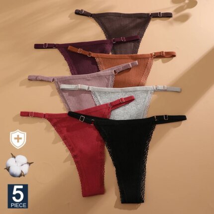 FINETOO 5PCS/Set Sexy G-string Panties Cotton Women’s Underwear Adjustable Waist Girl Female Pantys Bikini Lady Thongs Lingerie