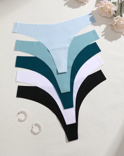 FINETOO 5PCS Seamless Thong Women Ice Silk T-back Intimate Solid Breathable Crotch Briefs Sexy Tanga Multiple 8 Color Lingerie
