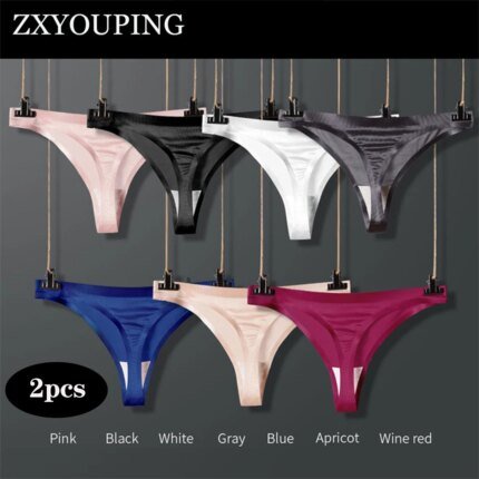 2Pcs/Lot Sexy Women Panties Ultra Thin Ice Silk Thong Female Low Rise Underwear M-3XL Plus Size G-String Seamless Solid Lingerie