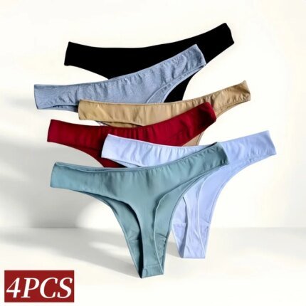 4Pcs/Set Cotton Panties Women Low Rise G-String Cotton Breathable Thongs Seamless Underwear Female Underpants Sexy Lingerie