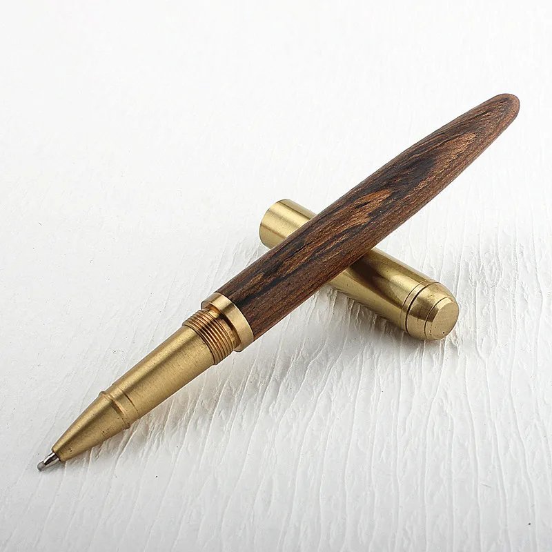 High Quality Brass Roller Ball Pen Ebony Wood Spin Stationery Office School Supplies Signature Ink Pens New