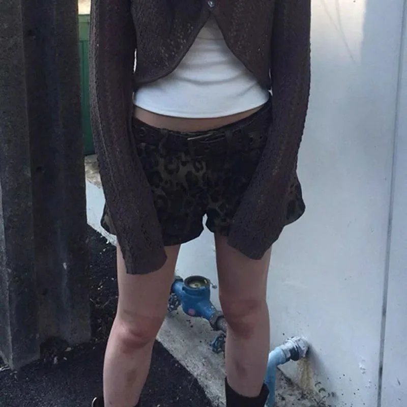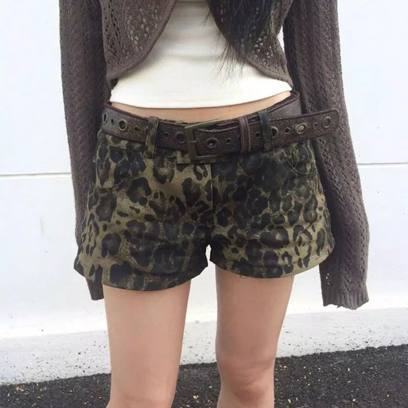 Summer New Leopard Print Denim Shorts Women Vintage Y2K Low Waist Streetwear Shorts Female Retro Pocket Button-Up Short JeansSummer New Leopard Print Denim Shorts Women Vintage Y2K Low Waist Streetwear Shorts Female Retro Pocket Button-Up Short Jeans